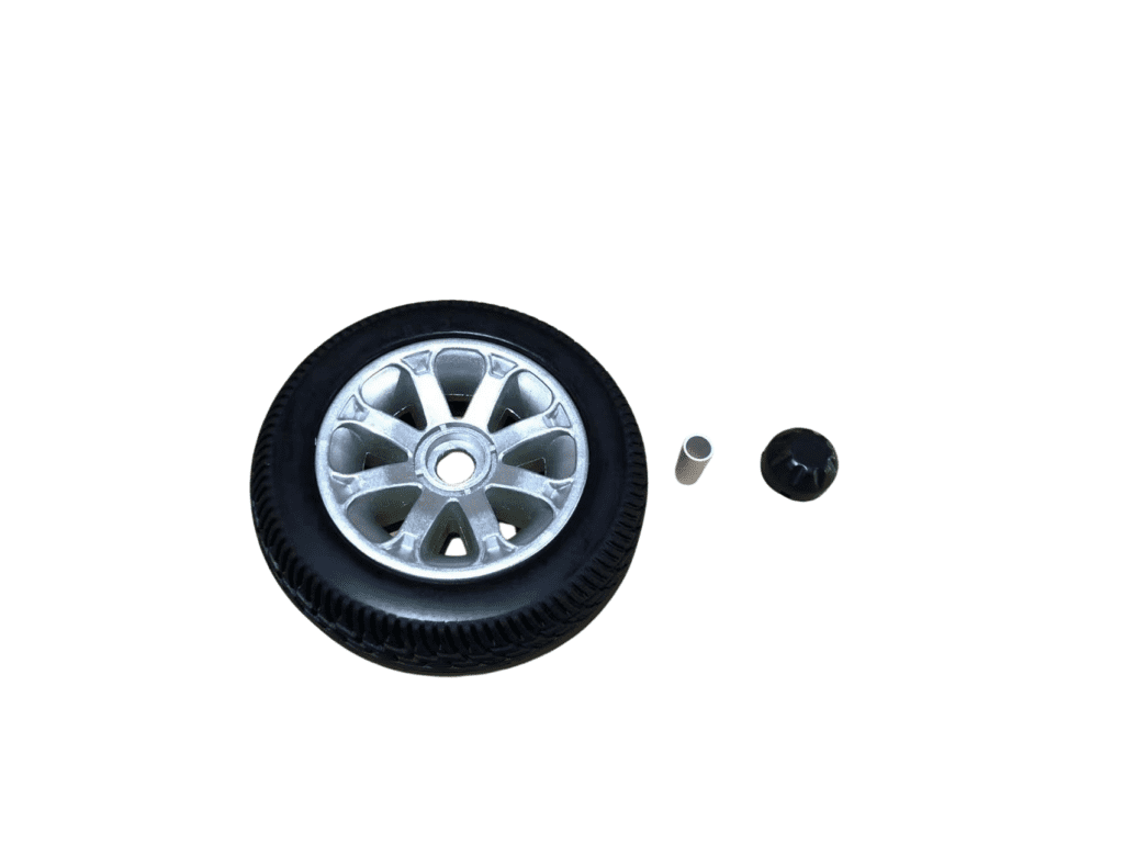Durable 8-inch wheels and stylish hub caps provide smooth rides and enhanced traction on various surfaces.